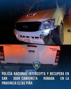 POLICÍA NACIONAL RECUPERA CAMIONETA SUSTRAÍDA EN ELÍAS PIÑA TRAS OPERATIVO DE INTELIGENCIA.